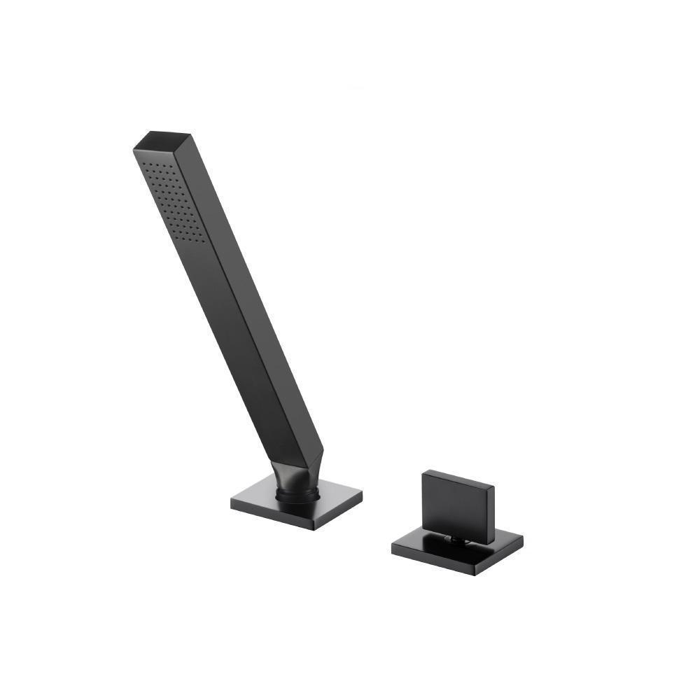 This deck diverter comes with a deck diverter valve installed under the tub deck [Flusso Part # DKM.2420], Handles, Handheld Shower Head, Holder and all associated hoses and mounting hardware.